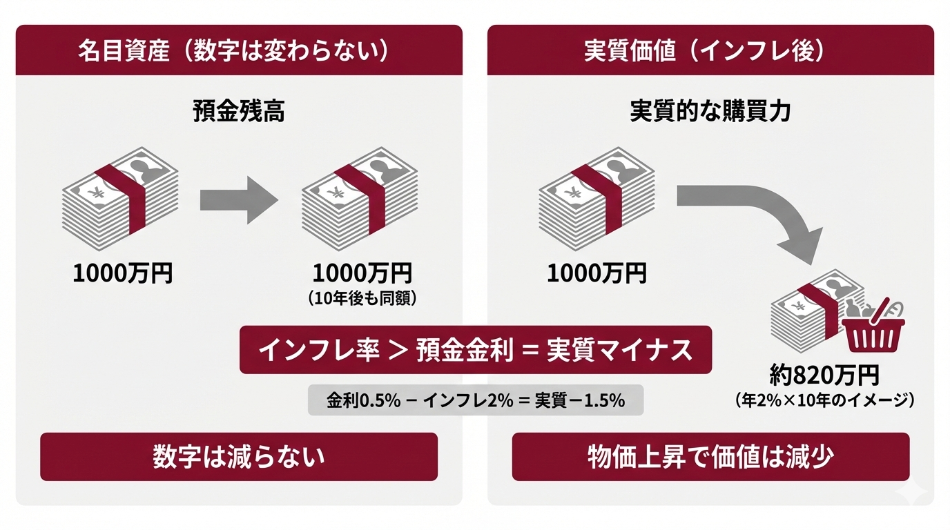 金利が高い銀行でも定期預金の金利は1%前後が一般的で、1,000万円を大手に預けても資産は増えにくいため、高利回りの投資先も併用すればリスクを抑えてインフレに負けない資産形成が可能です。