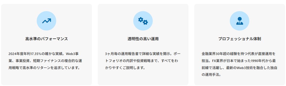 | 主な投資対象 | 日本株・事業投資・Web3事業 ・ファクタリングなど |