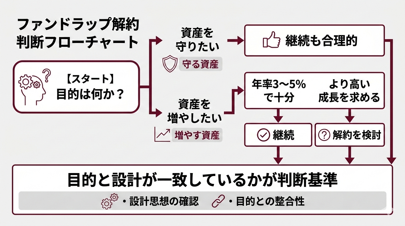 ファンドラップを解約する行動自体がゴールではなく、解約後の資産形成をどう組みなおすか、運用を前進させる選択になるのかを判断しなければなりません。
