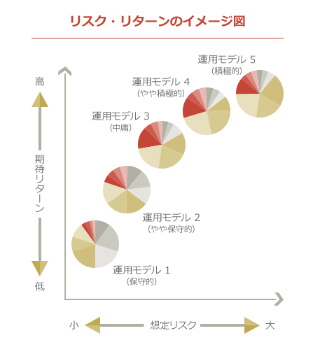 いちよしファンドラップ『ドリーム・コレクション』は、投資家のリスク許容度に応じて5つの運用モデルから選択できます。