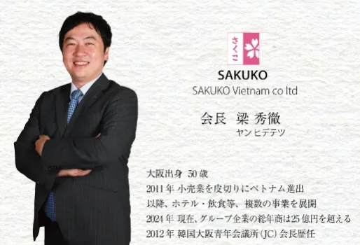 サクコ社は、ハイクア社の代表である梁 秀徹(ヤン ヒデテツ)氏が会長を務めるベトナムの日系企業で、日本製品販売店やスイーツ店、ビジネスホテルを展開する企業です。